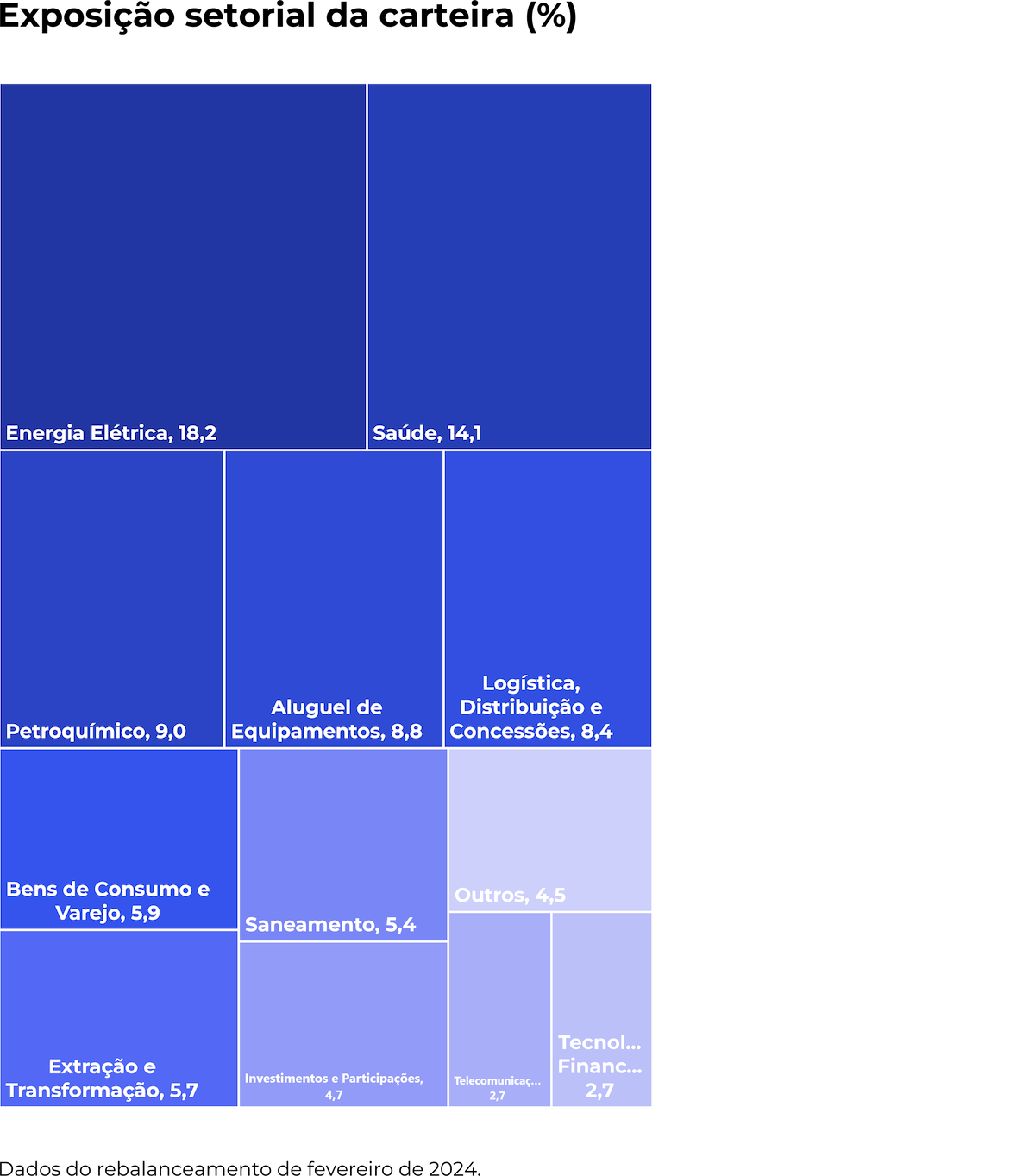Com duration de 2,57 anos. Esses ativos estão distribuídos em 19 setores distintos, proporcionando uma cobertura abrangente do mercado.