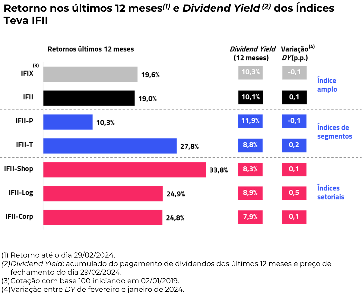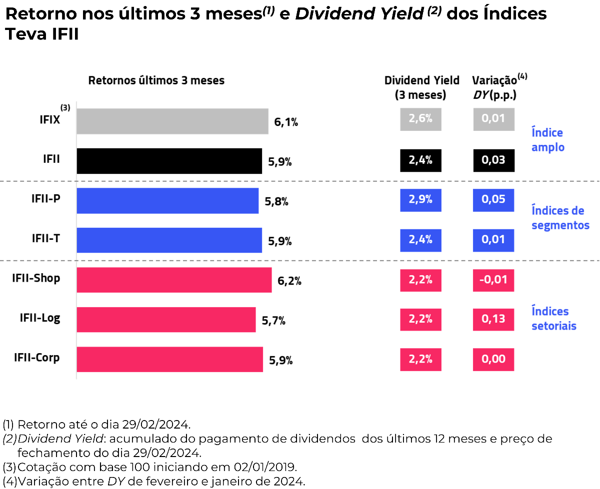 Entre os segmentos, o DY do IFII-P (Papel) foi destaque, atingindo 2,9%, em comparação com os 2,4% do IFII-T (Tijolo).