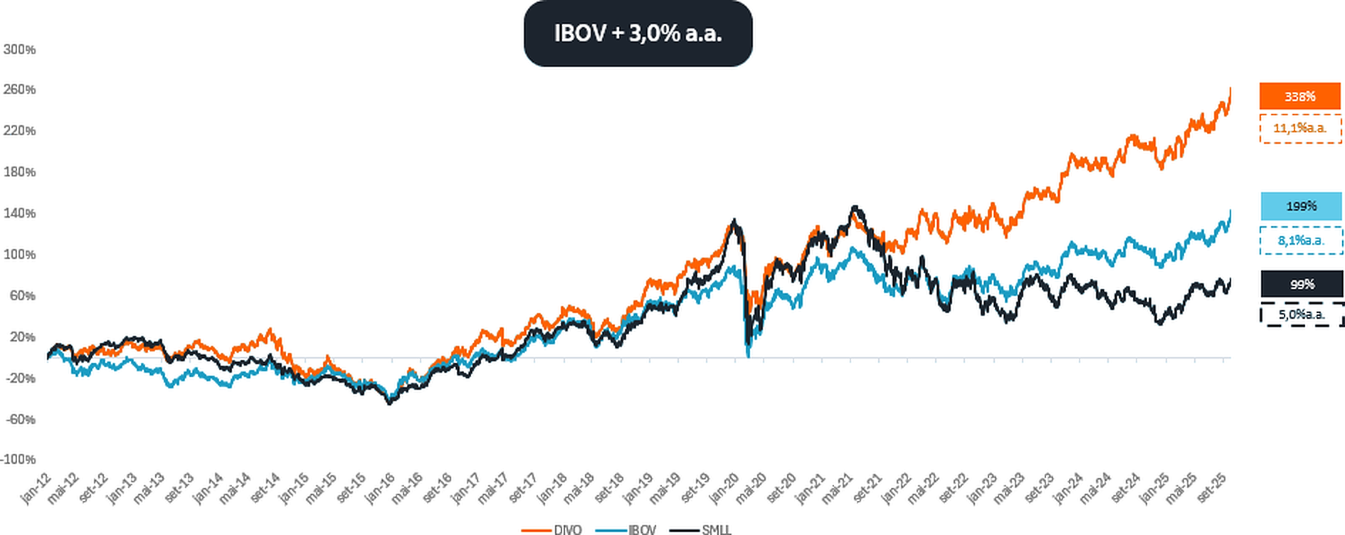 O ETF DIVO11, focado em empresas com histórico consistente de pagamento de dividendos, surge como uma alternativa interessante nesse ambiente. Ele direciona a exposição para companhias mais maduras, com geração de caixa e disciplina financeira, características que tendem a se destacar em cenários de juros elevados e incerteza econômica.
