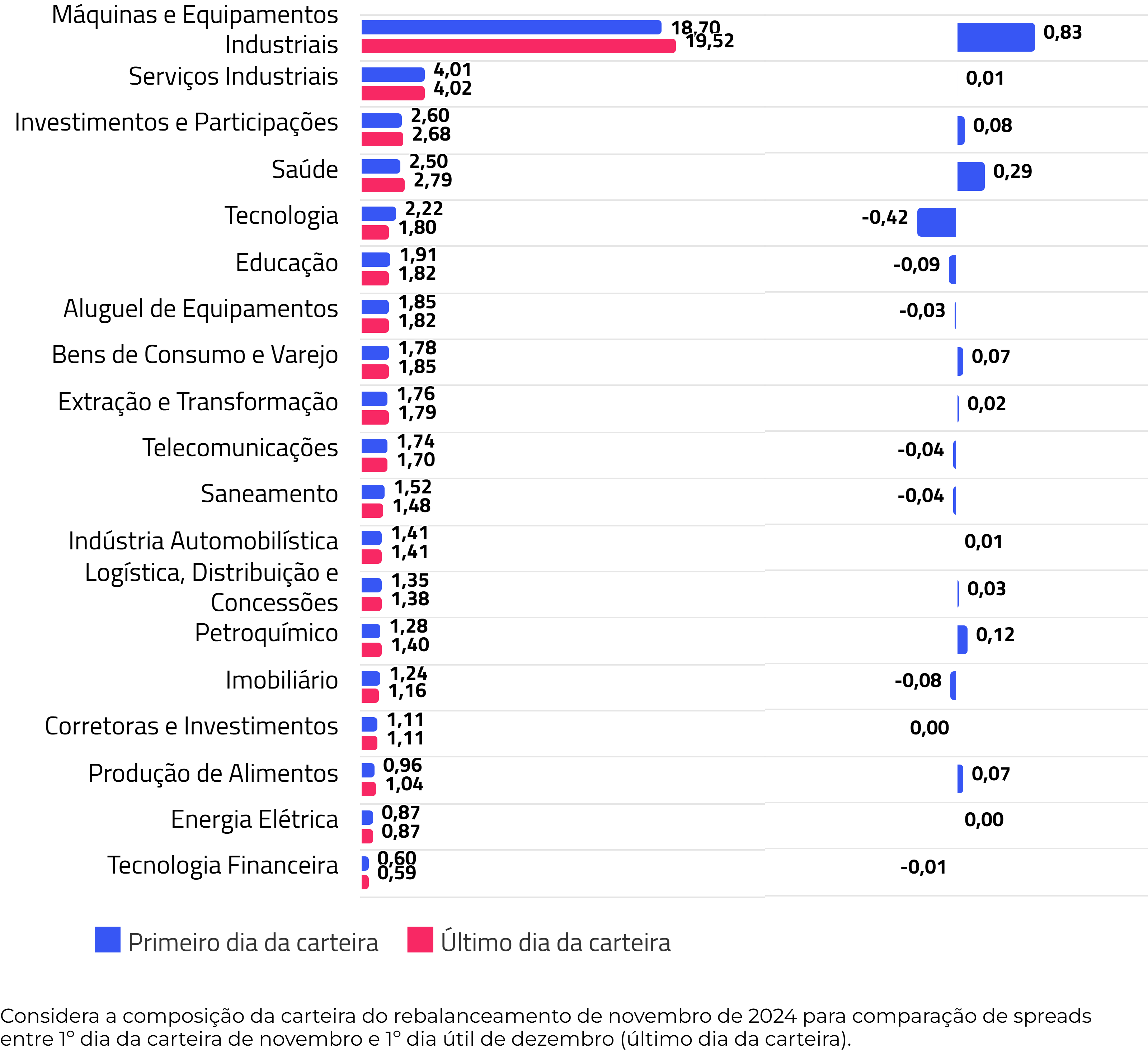 Spreads de carrego e variação (p.p.) por setor da carteira do rebalanceamento de novembro (%)