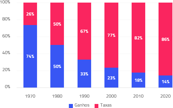 - 86% de todo valor gerado teria sido subtraído em taxas desde o início;