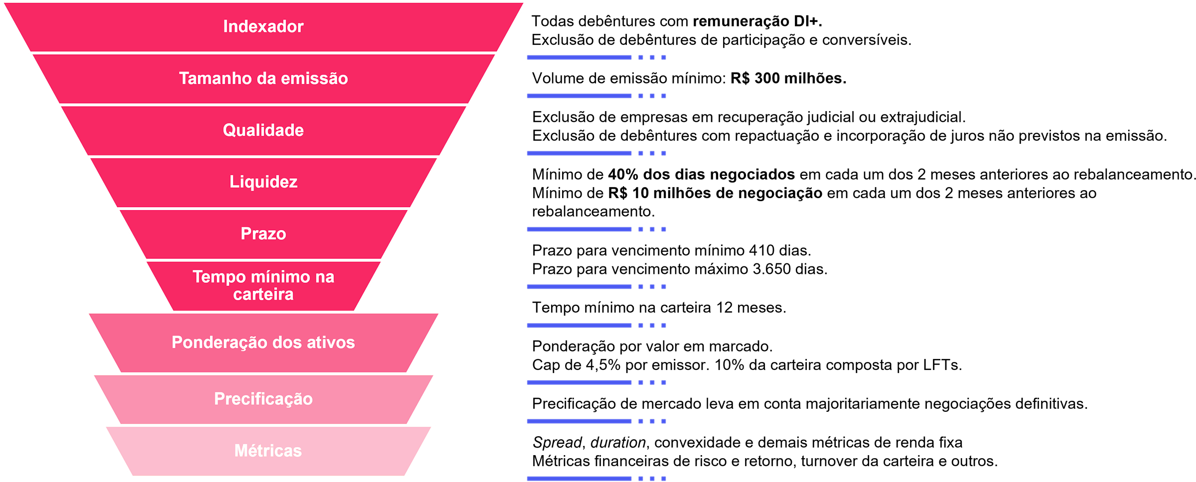 O Índice seleciona as debêntures mais líquidas do mercado com remuneração de DI + Spread.