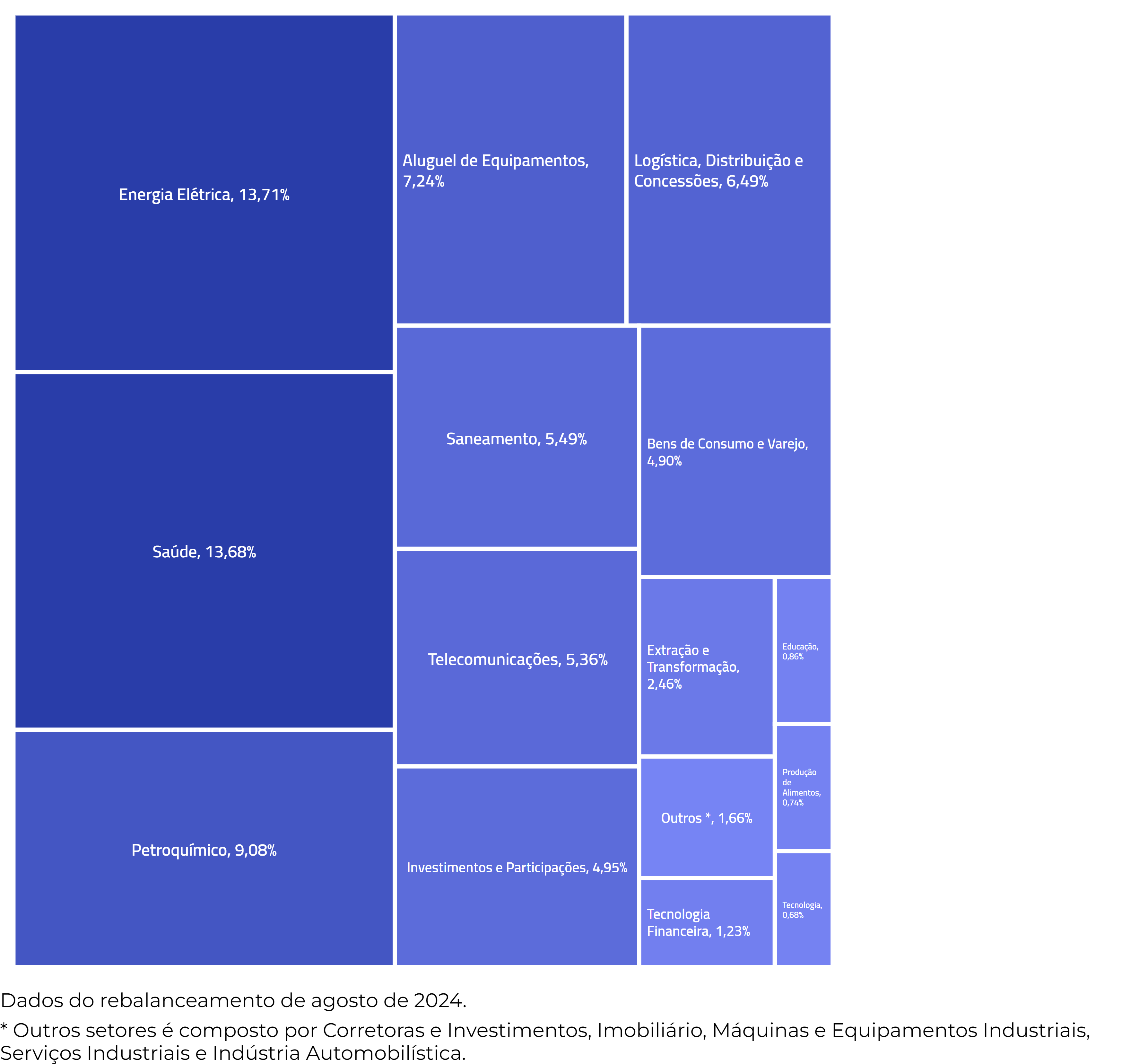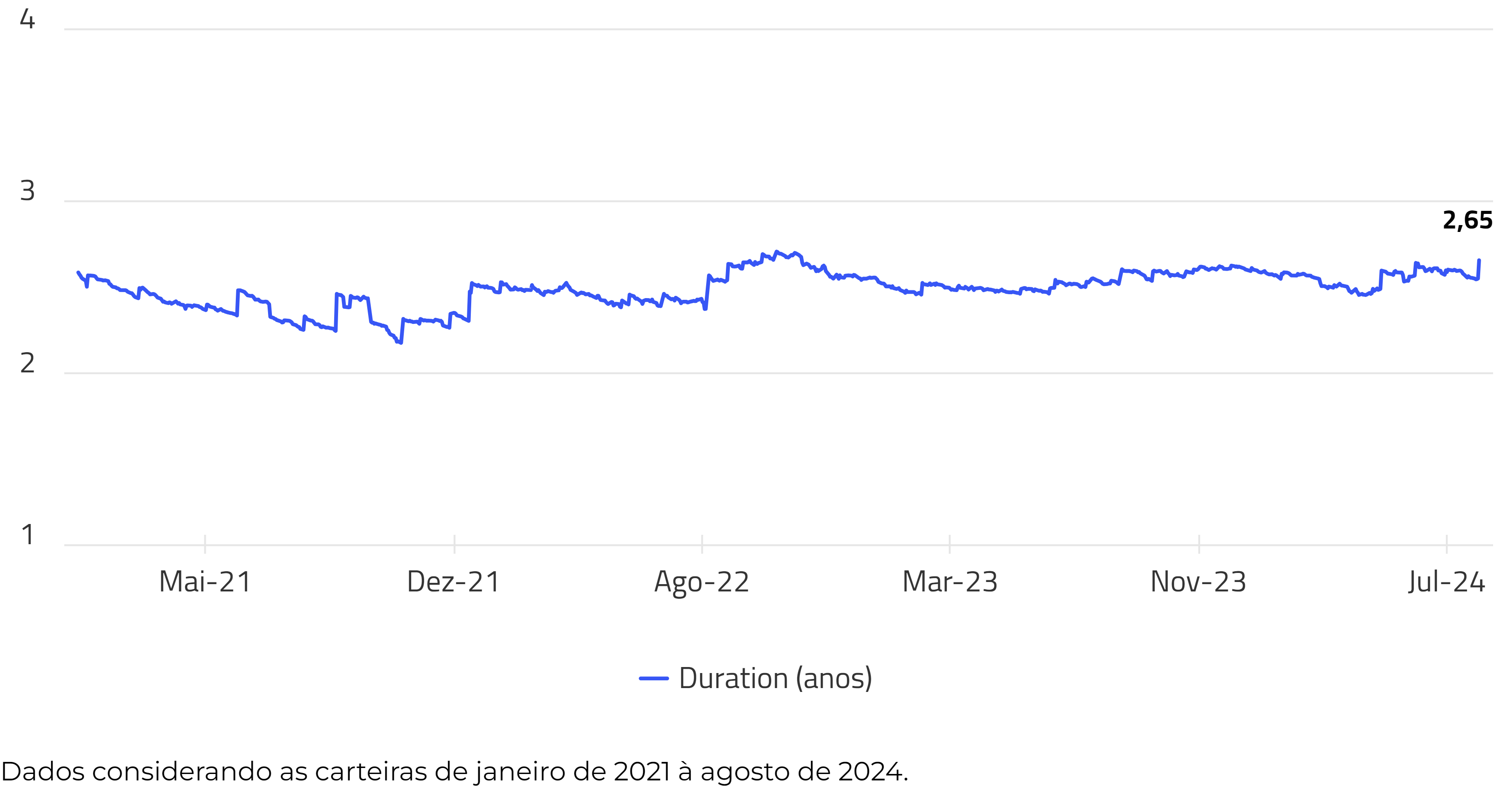 Com duration médio de 2,65 anos, esses ativos estão distribuídos entre 19 setores distintos, proporcionando uma cobertura abrangente do mercado.