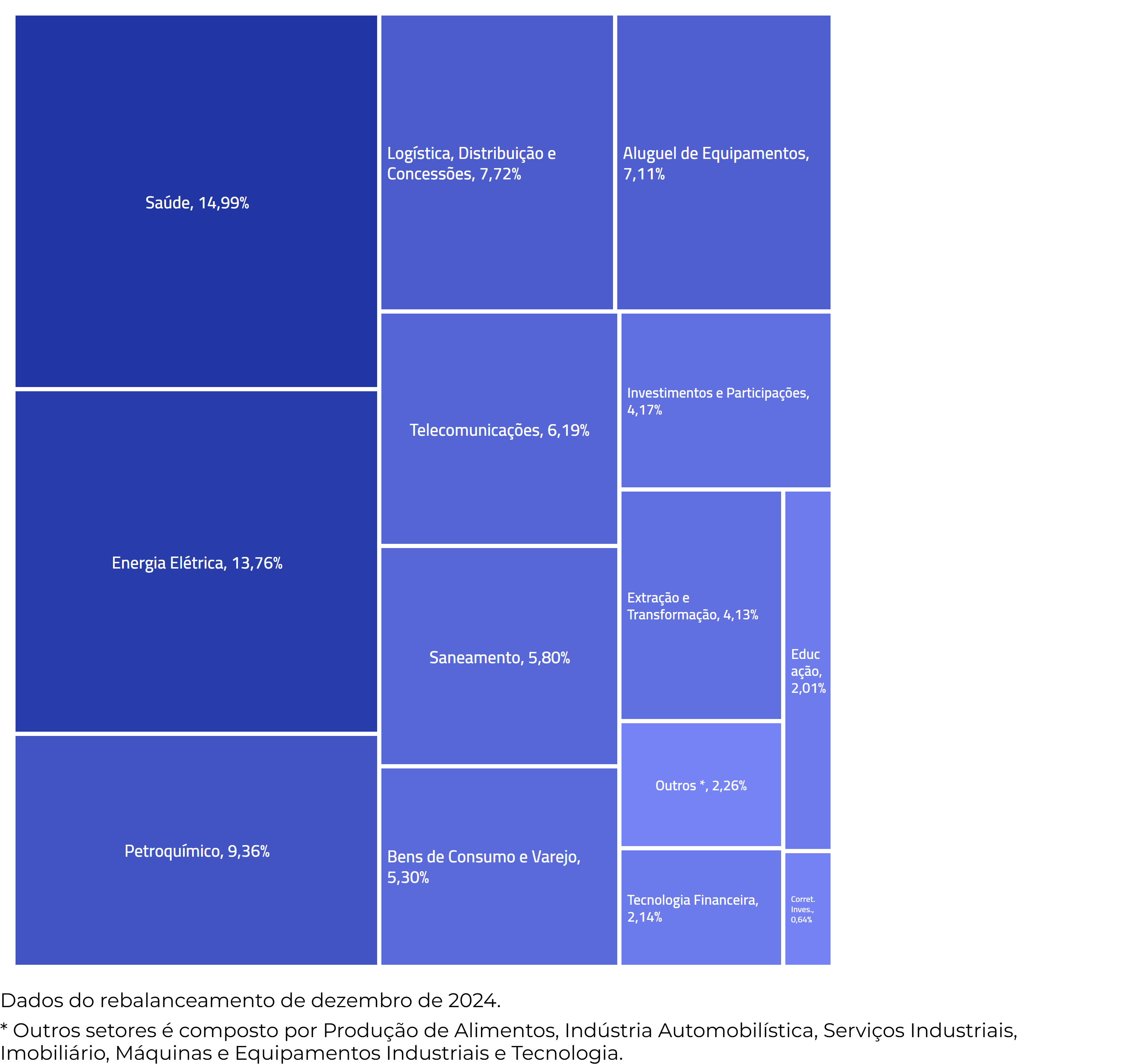 A diversificação do número de ativos é refletida na diversificação setorial do índice.