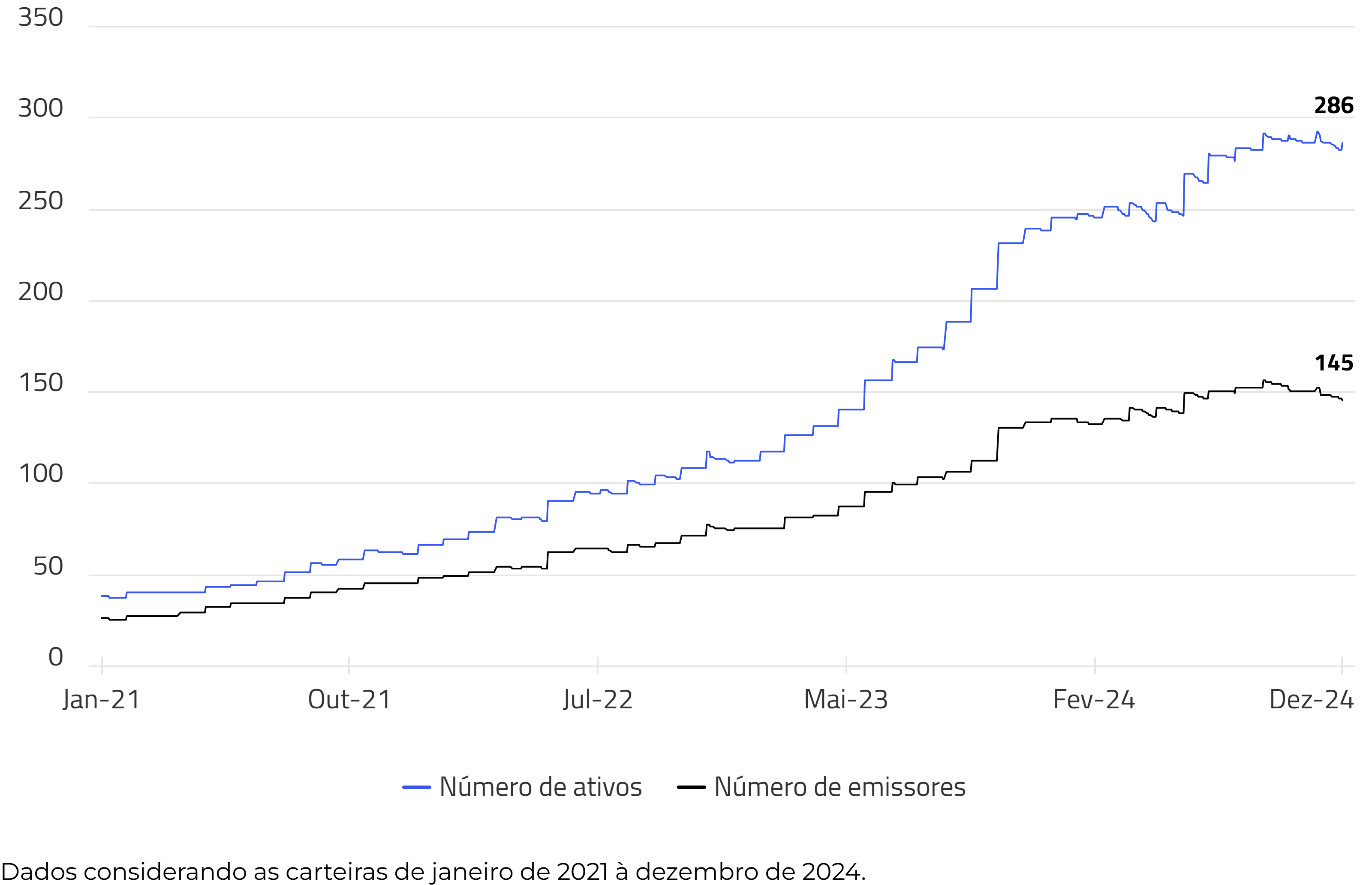 Histórico do número de ativos e emissores