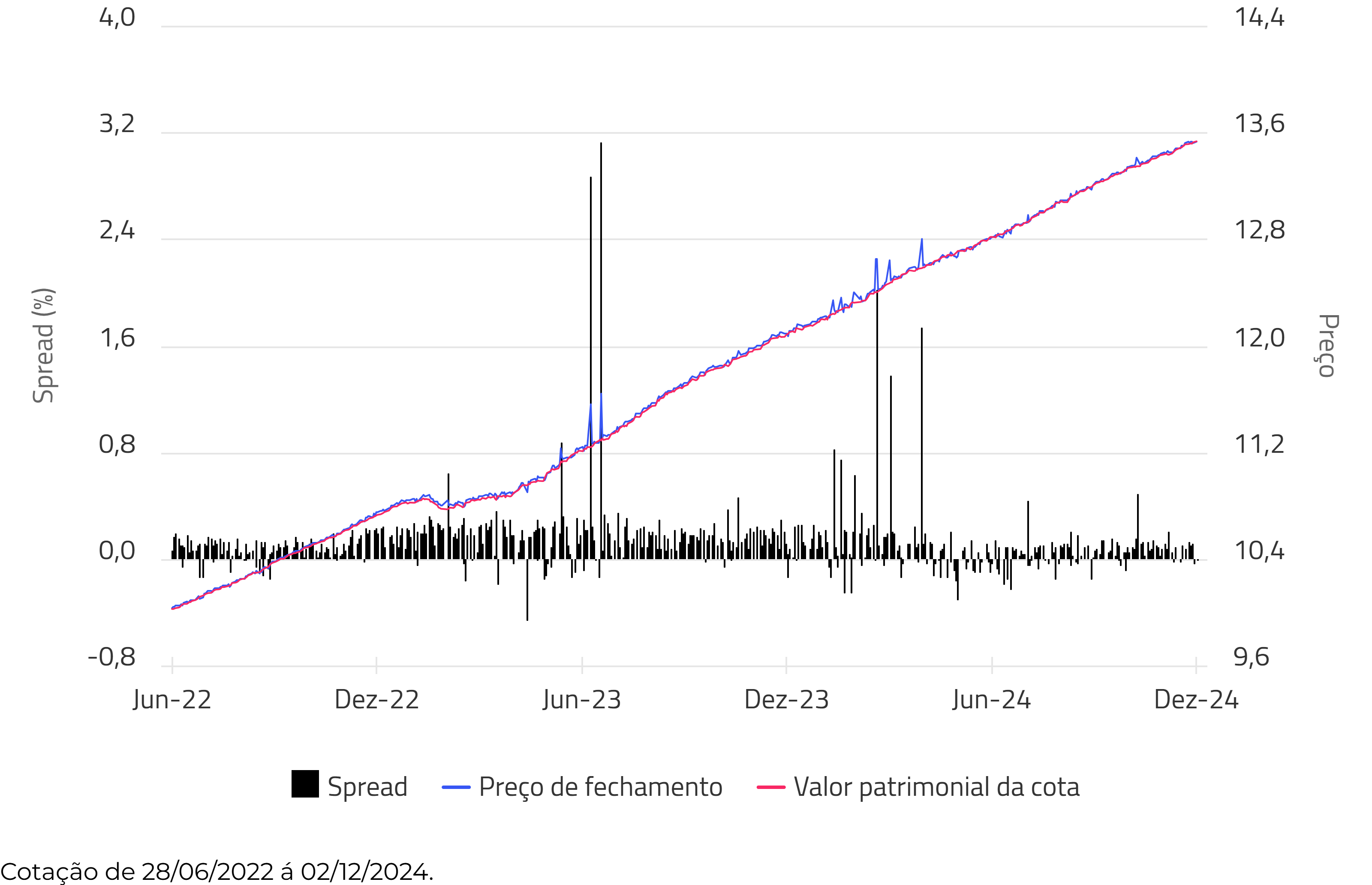 Spread entre o preço de fechamento e o valor patrimonial da cota