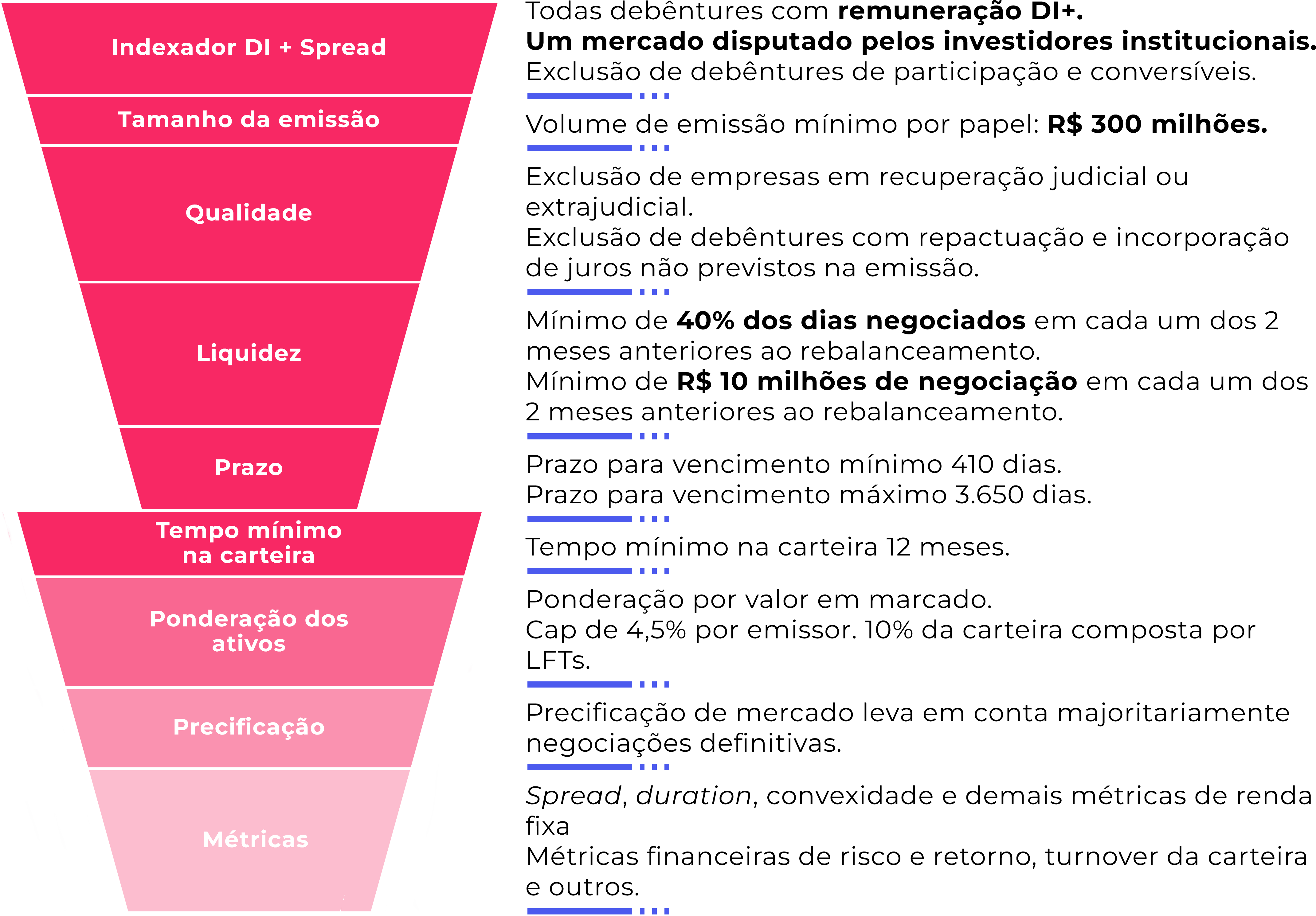 Ao distribuir os investimentos por centenas de debêntures, o índice se torna extremamente diversificado.