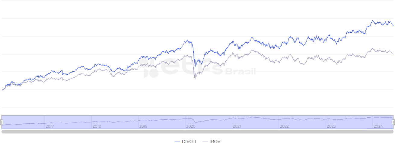 Essa comparação entre o DIVO11 e seus comparáveis pode ser visualizada no ETFs Brasil.