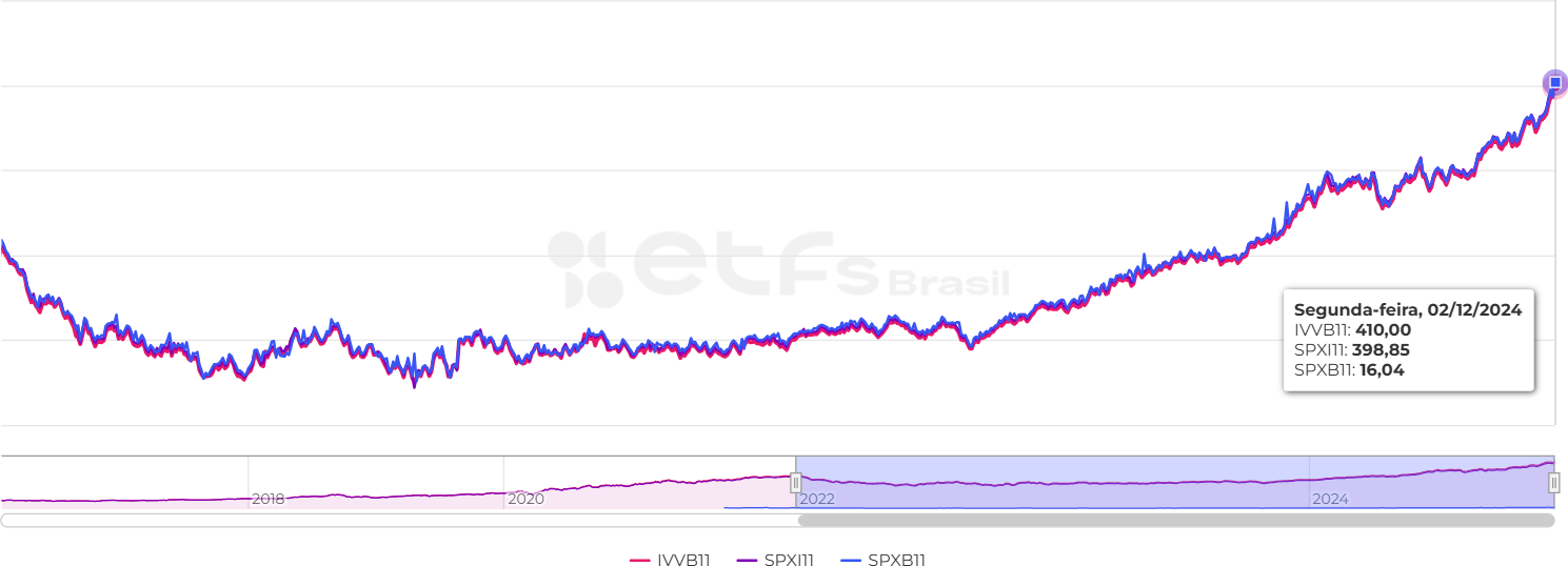 Ambos ETFs tiveram seus inícios após o lançamento do IVVB11: o SPXI11 foi lançado em 2015, enquanto o SPXB11 foi lançado alguns anos depois em 2021.