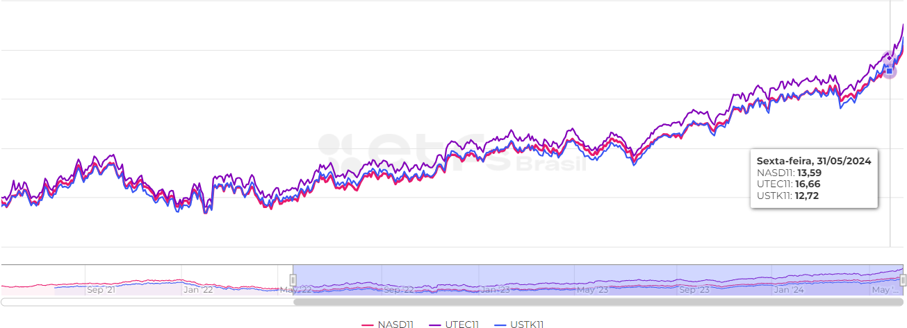 Os ETFs USTK11 e UTEC11 ambos replicam o desempenho do índice MSCI US IMI Technology 25/50 Index. Esse índice acompanha o desempenho de empresas dos Estados Unidos que atuam no setor e tecnologia da informação.